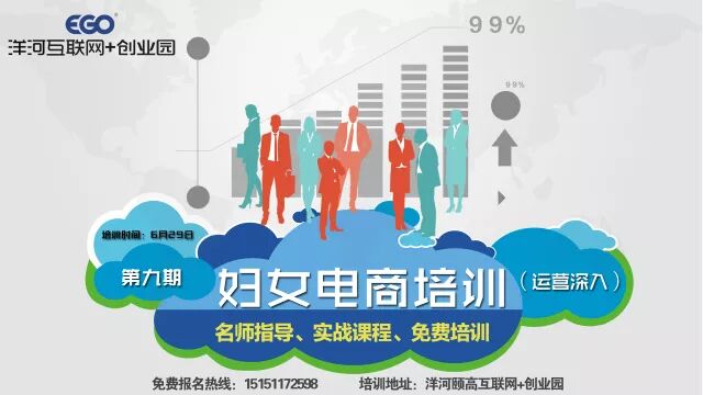 夏日创业缤纷资讯 妇女创业电商培训第二弹 来啦! 第二期“互联网+”她 电商创业培训 来了解一下吧~ 打破创业壁垒 召集全洋河 "有志之士"-乡镇妇女 6月29日,来吧 棒棒棒 洋河颐高互联网+创业园 06.29. 09:00- 09:15 人员签到入场 09:15-09:20 说明本次洋河颐高互联网+创业园“互联网”+她电商培训课程流程内容 09:20- 09:20 创业培训群学员扫码进群互相交流 09:30-11:00 淘宝认证讲师朱雨华开始授课—“我要开店、店铺装修” 子项目内容讲解 11:00-14:00 上午授课结束人员退场 14:00-16:00 淘宝认证讲师朱雨华开始授课—“宝贝上架、店铺设置”子项目内容讲解 16:00-16:10 整体授课结束 16:10-16:40 学员课后反馈,人员退场 看重点 培训内容主要以淘宝开店与基础的运营为大纲进行讲解,帮助妇女开设自己的网店,进行网络销售。本次培训主要以“我要开店、店铺装修”展开授课。其中店铺装修为本次授课较为着重部分展开讲解,如若参培学员店铺外包装修则跳过次项授课内容。进行下一轮授课围绕“宝贝上架、店铺设置”中的子项目展开讲解。 从事电商行业5年擅长推广引流、活动策划等,服务:光芒电器(天猫店)、飘零大叔(天猫店)等十多家天猫店铺。2014年成为淘宝大学讲师,淘宝大学公益讲师,擅长电商团队建设和提升,6年千万级电商操盘高手,个人擅长整店数据化运营,自然搜索,直通车,联合使用推广工具,打造爆款群,活动策划,一天销量突破5000笔。3月打造类目第一。 实战经验 工作经历:电脑公司技术员,网管,HP金牌服务工程师 2012年进入淘宝,任天猫店铺掌柜,现任江苏疯巢科技有限公司运营主管 淘宝大学认证讲师-朱雨华 地点 洋河颐高互联网+创业园—微巢学院 人群 乡镇有意从事电商创业妇女 联系人 李雅利